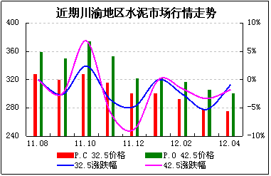 與整個(gè)西南市場(chǎng)相比,川渝市場(chǎng)的走勢(shì)說不上好,但也不算太差。雖然近期一直處于下跌通道,但本月跌幅略有縮小,市場(chǎng)信心開始逐步恢復(fù)。本月川渝市場(chǎng)均價(jià)P.O42.5標(biāo)號(hào)水泥(下同)為300.7元/噸,相比上月的306.1元/噸,跌幅為1.8%,而上月跌幅為3.3% 。