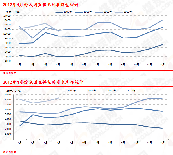 2012年4月全國(guó)重點(diǎn)發(fā)電企業(yè)耗煤/庫(kù)存情況 | |||||||||||