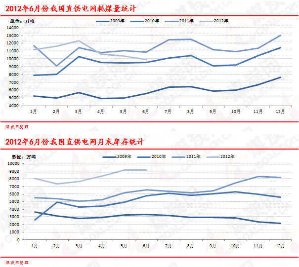 2012年6月全國(guó)重點(diǎn)發(fā)電企業(yè)耗煤/庫(kù)存情況 | |||||||||||