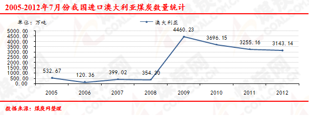 2005-2012年7月份我國進(jìn)口澳大利亞煤炭數(shù)量走勢統(tǒng)計