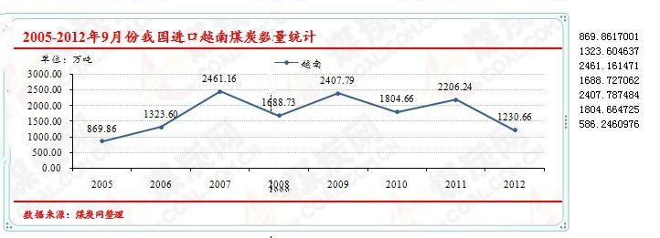 2005-2012年9月份我國進(jìn)口越南煤炭數(shù)量走勢統(tǒng)計(jì)