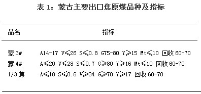 表1:蒙古主要出口焦原煤品種及指標(biāo)