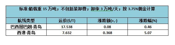 巴西/澳洲-中國(guó)平均運(yùn)費(fèi)。