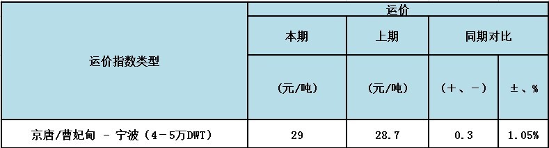 此表包含中國沿海運(yùn)價(jià)指數(shù)-煤炭(天津-寧波航線)運(yùn)價(jià)指數(shù)的本期和上期數(shù),以及同比增減。