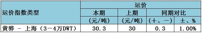此表包含黃驊港航線運(yùn)價(jià)指數(shù)(黃驊-上海航線)運(yùn)價(jià)指數(shù)的本期和上期數(shù),以及同比增減。