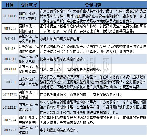 表3:2012年下半年至今各水泥企業(yè)與耗材等相關(guān)企業(yè)合作的情況