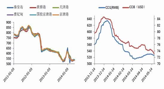 圖2:環(huán)渤海港口平倉價 圖3:CCI指數(shù)