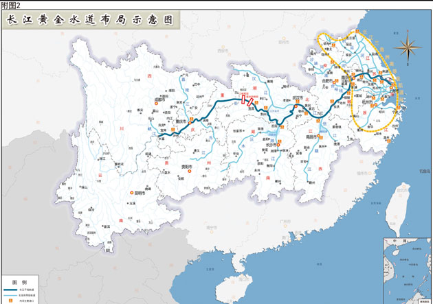 建設上海、南京、連云港、徐州、杭州、寧波、合肥、南昌、長沙、武漢、重慶、成都、貴陽、昆明等全國性綜合交通樞紐(節(jié)點城市)以及南通、蕪湖、九江、岳陽、宜昌、瀘州等重要區(qū)域性綜合交通樞紐(節(jié)點城市)。 |