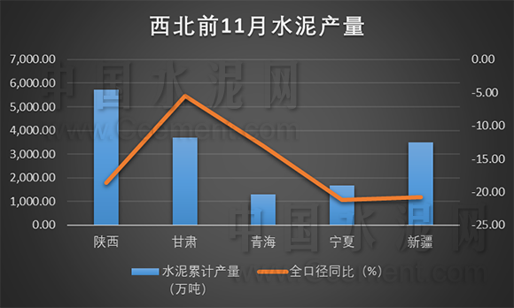 今年由于地方財政去杠桿導(dǎo)致基建開工率底,進(jìn)而導(dǎo)致水泥需求下滑明顯并不止陜西一省。據(jù)統(tǒng)計,今年前11月包括青海、新疆、寧夏、甘肅在內(nèi)的所有西北省份水泥需求都下跌明顯,除甘肅外,其余西北各省水泥需求下滑都超過15%。