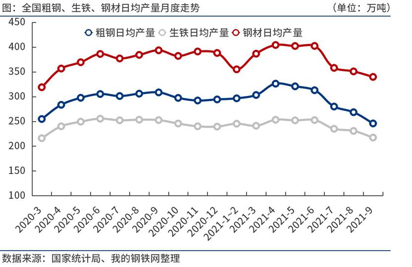 9月份全國(guó)粗鋼日均產(chǎn)量245.83萬(wàn)噸,較上月大幅下降8.4%,創(chuàng)下2019年以來(lái)單月新低。由于各地“能耗雙控”政策趨嚴(yán),加上電煤供應(yīng)偏緊,9月份工業(yè)企業(yè)限電限產(chǎn),鋼廠產(chǎn)量也明顯下降。