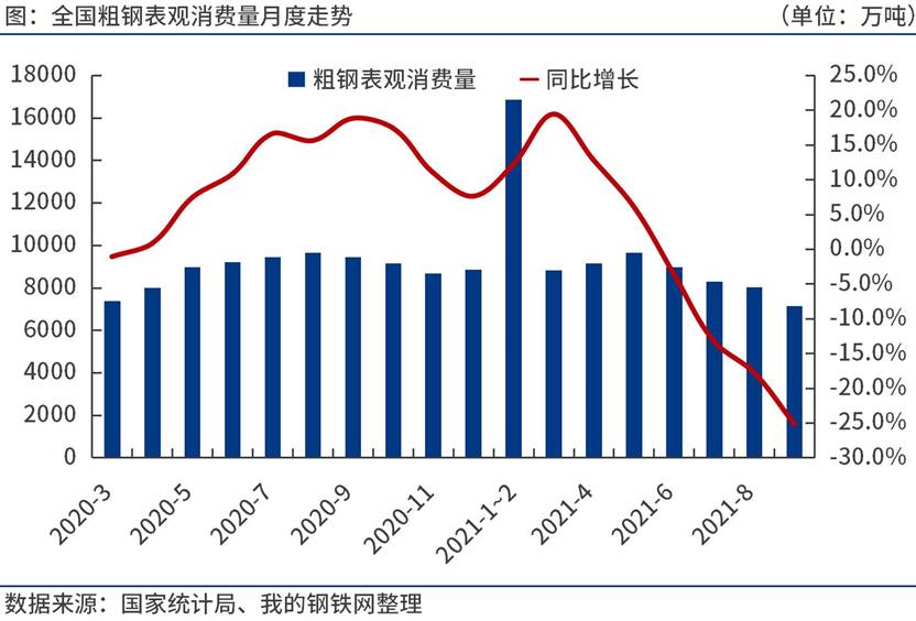 統(tǒng)計(jì)局、海關(guān)總署數(shù)據(jù)顯示,20219月份,全國(guó)粗鋼產(chǎn)量7375萬(wàn)噸,鋼材凈出口366.4萬(wàn)噸,折合粗鋼凈出口381.7萬(wàn)噸(鋼材按0.96折算),鋼坯、鋼錠凈進(jìn)口146萬(wàn)噸,粗鋼表觀消費(fèi)量7139.3萬(wàn)噸,同比下降25.2%。(注:20209月份,全國(guó)粗鋼產(chǎn)量修正為9359.1萬(wàn)噸,粗鋼表觀消費(fèi)量修正為9540.5萬(wàn)噸。)