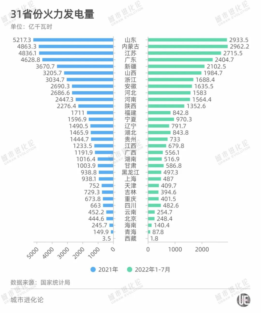 不過,和大部分人印象中的排名不同,在火力發(fā)電量排行榜上,山東才是“隱形冠軍”,多年來一直占據(jù)首位,2021年發(fā)電量達到5217.3億千瓦時。