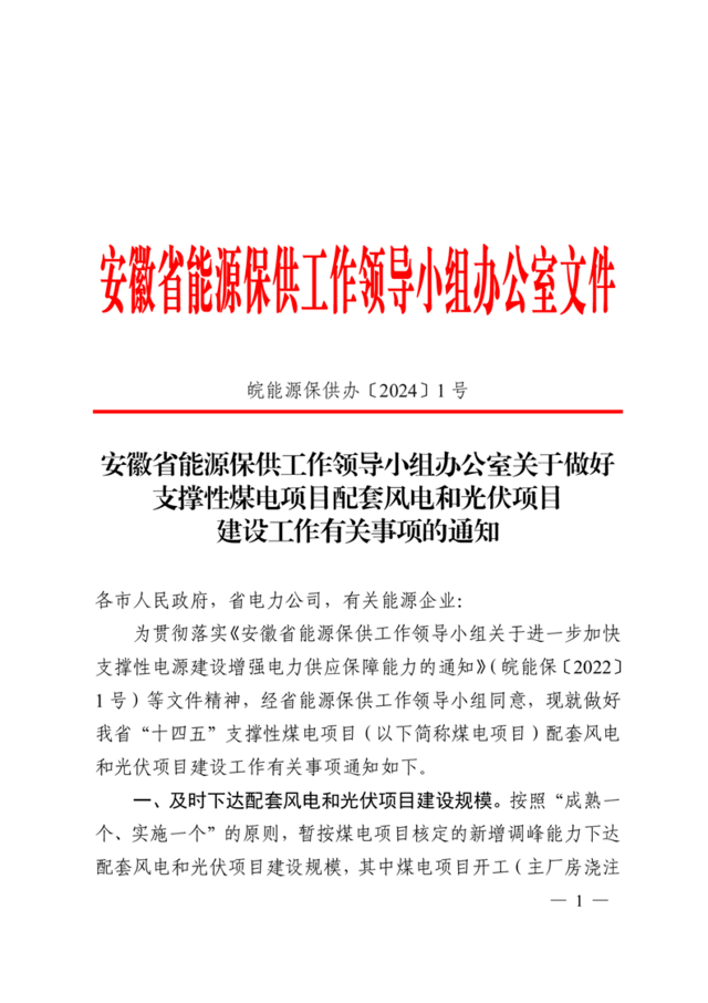 近日,安徽省能源局印發(fā)了《關(guān)于做好支撐性煤電項(xiàng)目配套風(fēng)電和光伏項(xiàng)目建設(shè)工作有關(guān)事項(xiàng)的通知》。
