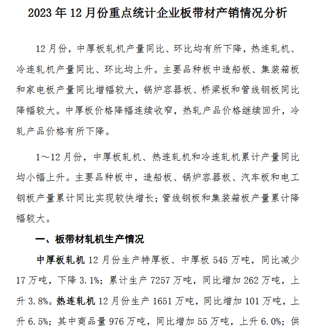 2023年12月份重點(diǎn)統(tǒng)計(jì)企業(yè)板帶材產(chǎn)銷情況分析
