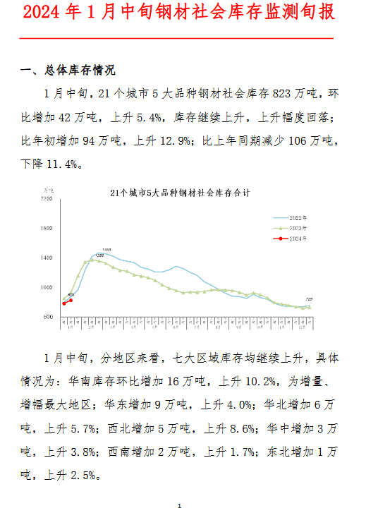 1月中旬鋼材社會(huì)庫(kù)存繼續(xù)上升