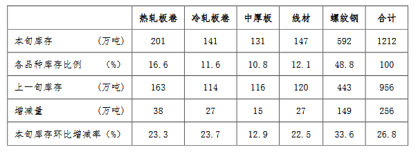 2月中旬,5大品種鋼材社會(huì)庫(kù)存環(huán)比均有所上升,其中螺紋鋼為增量和增幅最大品種,具體見(jiàn)下表。