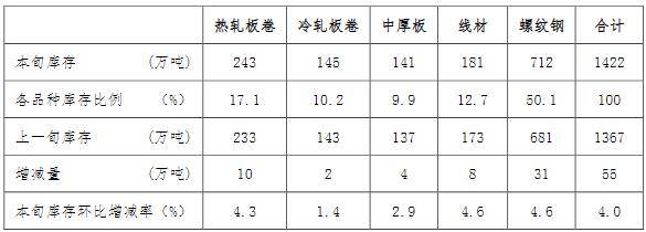 3月上旬,5大品種鋼材社會(huì)庫(kù)存環(huán)比均有所上升,增量、增幅有所回落,其中螺紋鋼仍為增量最大品種,具體見下表。