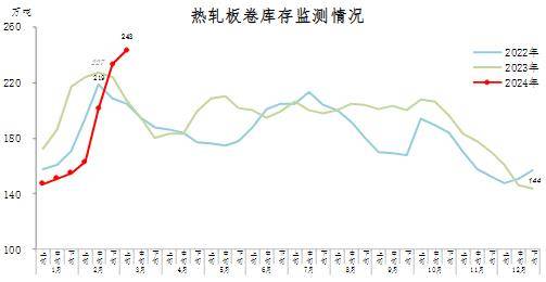 3月上旬,熱軋板卷庫(kù)存243萬(wàn)噸,環(huán)比增加10萬(wàn)噸,上升4.3%,庫(kù)存上升幅度有所回落;比年初增加99萬(wàn)噸,上升68.8%;比上年同期增加36萬(wàn)噸,上升17.4%。