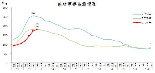 3月上旬,線材庫(kù)存181萬(wàn)噸,環(huán)比增加8萬(wàn)噸,上升4.6%,庫(kù)存上升幅度有所回落;比年初增加98萬(wàn)噸,上升118.1%;比上年同期減少3萬(wàn)噸,下降1.6%。