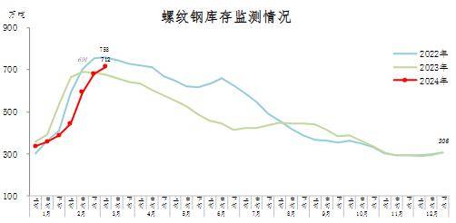 3月上旬,螺紋鋼庫(kù)存712萬(wàn)噸,環(huán)比增加31萬(wàn)噸,上升4.6%,庫(kù)存增速繼續(xù)回落;比年初增加407萬(wàn)噸,上升133.4%;比上年同期增加33萬(wàn)噸,上升4.9%。