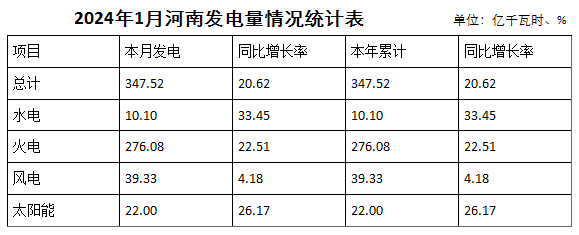 發(fā)電量方面,1月份,全省發(fā)電量347.52億千瓦時(shí),同比增加20.62%。