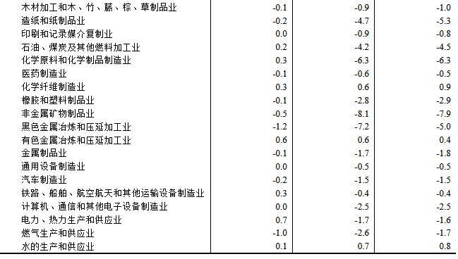 工業(yè)生產(chǎn)者購(gòu)進(jìn)價(jià)格中,建筑材料及非金屬類(lèi)價(jià)格下降7.2%,農(nóng)副產(chǎn)品類(lèi)價(jià)格下降6.0%,化工原料類(lèi)價(jià)格下降5.4%,燃料動(dòng)力類(lèi)價(jià)格下降4.9%,黑色金屬材料類(lèi)價(jià)格下降4.1%;有色金屬材料及電線類(lèi)價(jià)格上漲0.7%,紡織原料類(lèi)價(jià)格上漲0.5%。