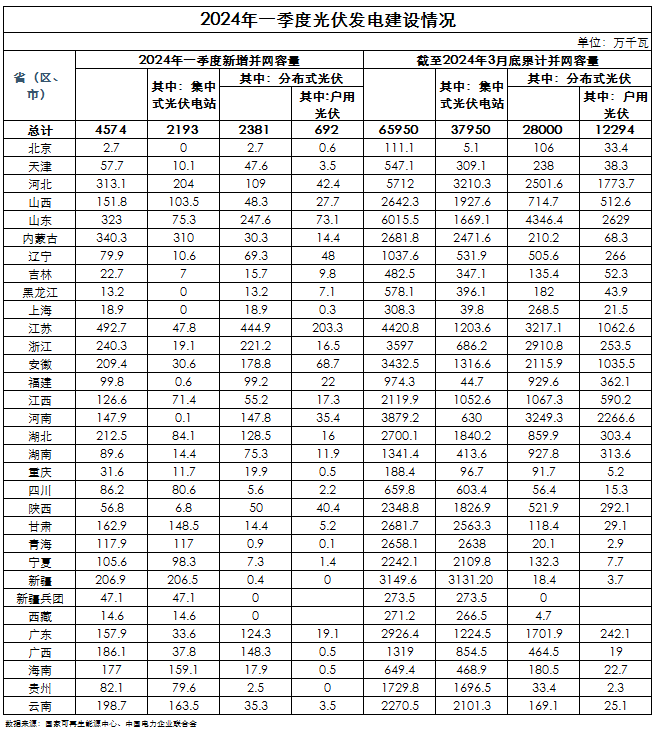 國家能源局于5月6日晚間公布了2024年一季度光伏發(fā)電建設(shè)情況。