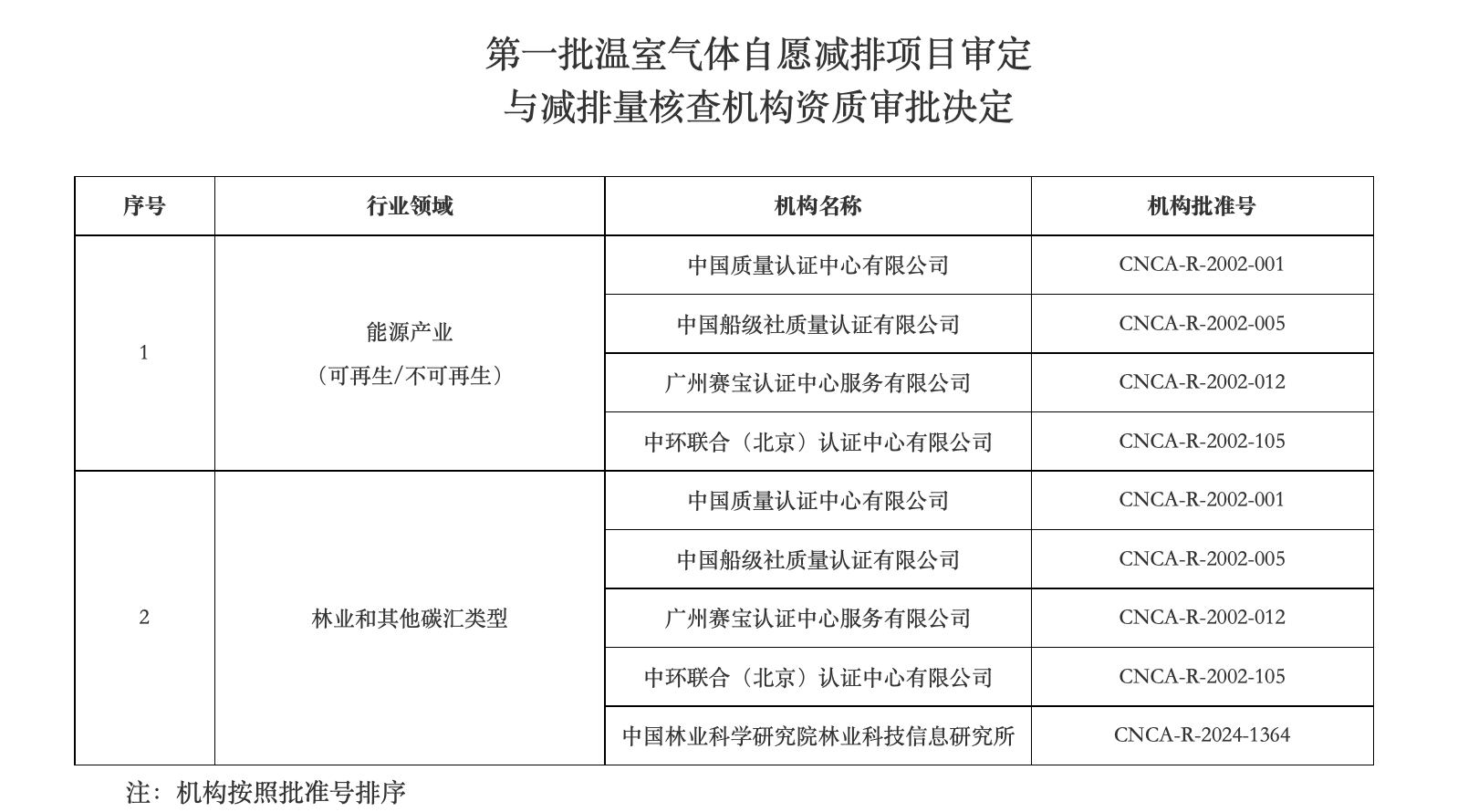 根據(jù)《中華人民共和國(guó)認(rèn)證認(rèn)可條例》《溫室氣體自愿減排交易管理辦法(試行)》《認(rèn)證機(jī)構(gòu)管理辦法》,經(jīng)商生態(tài)環(huán)境部,現(xiàn)發(fā)布第一批溫室氣體自愿減排項(xiàng)目審定與減排量核查機(jī)構(gòu)資質(zhì)審批決定。