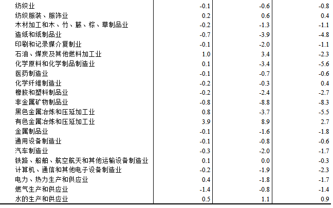 工業(yè)生產(chǎn)者購(gòu)進(jìn)價(jià)格中,建筑材料及非金屬類(lèi)價(jià)格下降8.4%,農(nóng)副產(chǎn)品類(lèi)價(jià)格下降4.6%,黑色金屬材料類(lèi)價(jià)格下降3.1%,化工原料類(lèi)價(jià)格下降2.9%,燃料動(dòng)力類(lèi)價(jià)格下降2.1%;有色金屬材料及電線類(lèi)價(jià)格上漲8.1%,紡織原料類(lèi)價(jià)格上漲0.3%。