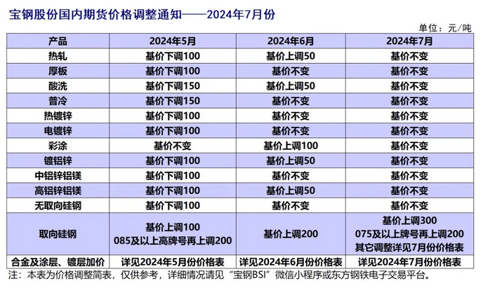 經(jīng)研究決定,寶鋼股份板材內(nèi)銷價格2024年7月份在2024年6月份基礎上調(diào)整公告如下(以下除特殊注明外,均為不含稅):