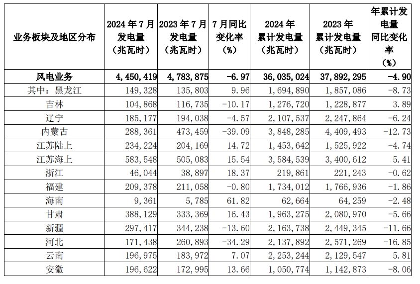 2024 年 7 月發(fā)電量詳情如下: