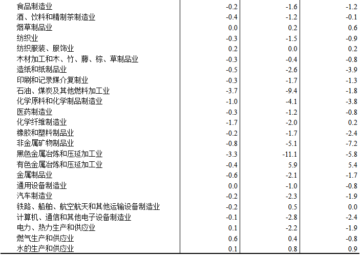 工業(yè)生產(chǎn)者購進(jìn)價格中,黑色金屬材料類價格下降2.4%,燃料動力類價格下降1.4%,化工原料類價格下降1.1%,建筑材料及非金屬類價格下降0.8%,有色金屬材料及電線類價格下降0.6%,紡織原料類價格下降0.5%,農(nóng)副產(chǎn)品類價格下降0.4%。