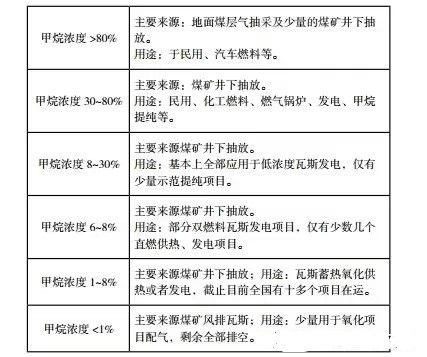資料補充:目前我國各礦區(qū)瓦斯利用按濃度分為三類。甲烷濃度在30%以上的瓦斯主要用于民用、發(fā)電、工業(yè)燃料以及化工等方面;甲烷濃度在1%—30%的瓦斯主要用于低濃度瓦斯發(fā)電;對于甲烷濃度在1%以下的超低濃度煤礦瓦斯和甲烷濃度在0.01%—0.5%的“通風瓦斯”,目前業(yè)界主要作為輔助燃料或主要燃料以制取高溫熱風、熱水、蒸汽或發(fā)電。