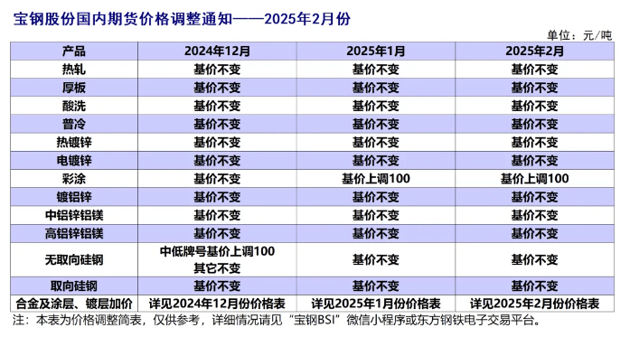 經(jīng)研究決定,寶鋼股份板材內(nèi)銷價(jià)格2025年2月份在2025年1月份基礎(chǔ)上調(diào)整公告如下(以下除特殊注明外,均為不含稅):