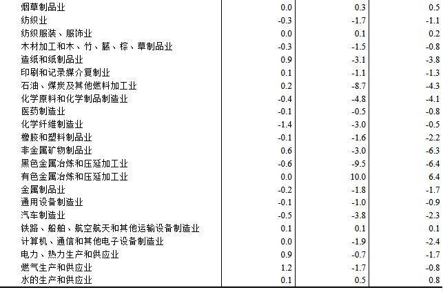 工業(yè)生產(chǎn)者購(gòu)進(jìn)價(jià)格中,黑色金屬材料類(lèi)價(jià)格下降7.9%,燃料動(dòng)力類(lèi)價(jià)格下降5.9%,化工原料類(lèi)價(jià)格下降4.7%,農(nóng)副產(chǎn)品類(lèi)價(jià)格下降3.9%,建筑材料及非金屬類(lèi)價(jià)格下降2.3%,紡織原料類(lèi)價(jià)格下降1.6%;有色金屬材料及電線類(lèi)價(jià)格上漲11.4%。