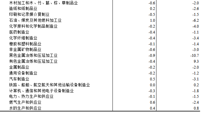 工業(yè)生產(chǎn)者購進(jìn)價格中,黑色金屬材料類價格下降8.9%,燃料動力類價格下降5.2%,化工原料類價格下降4.1%,農(nóng)副產(chǎn)品類價格下降3.3%,建筑材料及非金屬類價格下降2.3%,紡織原料類價格下降1.4%;有色金屬材料及電線類價格上漲10.9%。