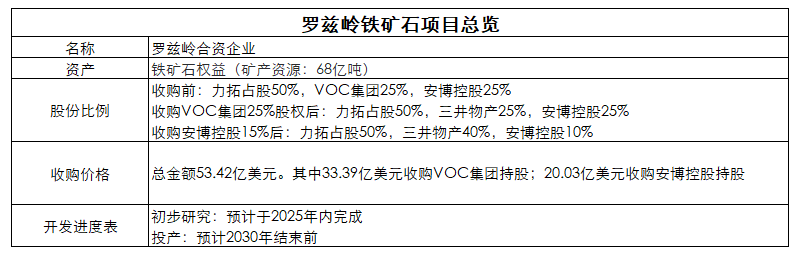 作為交易的一部分,三井物產(chǎn)將以33.4億美元的價(jià)格收購(gòu)VOC集團(tuán)在羅茲嶺的全部25%的權(quán)益,并與安博控股有限公司(AMB Holdings)簽署了意向協(xié)議,以20億美元的價(jià)格收購(gòu)15%的股權(quán)。安博控股將保留該項(xiàng)目10%的權(quán)益。這些交易仍需獲得監(jiān)管部門(mén)的批準(zhǔn)和成交條件。